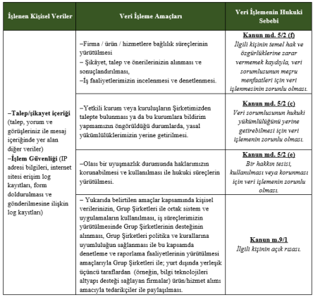 Kanun’un 5. Maddesi kişisel verilerin işlenmesine ilişkin hukuki sebepleri düzenlemektedir. Aşağıda hangi kişisel verilerinizin, hangi amaçlarla ve hangi hukuki sebeplere dayalı olarak işlendiği konusunda size bilgi vermekteyiz: