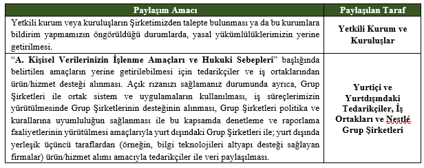 Yukarıda “A. Kişisel Verilerinizin İşlenme Amaçları ve Hukuki Sebepleri” başlığında belirtilen kişisel verilerinizi, aşağıdaki amaçlar doğrultusunda yine aşağıda belirtilen taraflarla paylaşıyoruz: