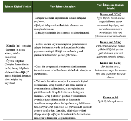 Kanun’un 5. Maddesi kişisel verilerin işlenmesine ilişkin hukuki sebepleri düzenlemektedir. Aşağıda hangi kişisel verilerinizin, hangi amaçlarla ve hangi hukuki sebeplere dayalı olarak işlendiği konusunda size bilgi vermekteyiz: